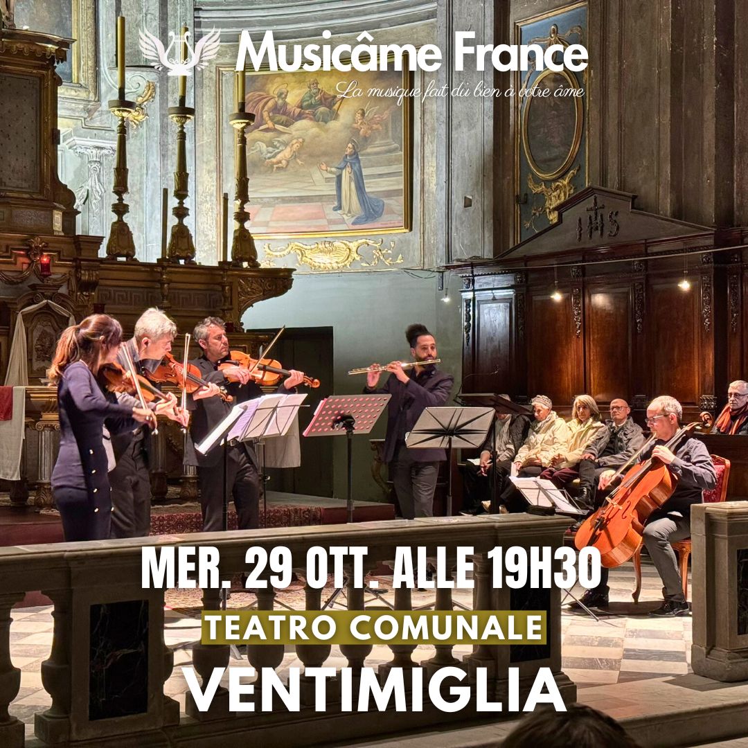 Mercoledì 29 ottobre 2025, l’Ensemble Musicâme France vi invita a un concerto straordinario a Ventimiglia. Questo evento rende omaggio alla festa di Ognissanti, un momento di memoria, luce e raccoglimento. Sarà una serata in cui la musica si fa omaggio alla bellezza, all’emozione e alla spiritualità. Il programma offrirà un autentico viaggio musicale attraverso i secoli: pagine barocche di Telemann e C.P.E. Bach, capolavori romantici di Rachmaninov, Schubert ed Elgar, oltre a musiche iconiche di John Williams (Harry Potter – Hedwig’s Theme) e Clint Mansell (Lux Aeterna). Grazie alla ricchezza e alla varietà di questo repertorio, il concerto di Ognissanti a Ventimiglia saprà conquistare sia gli appassionati di musica classica, sia tutti coloro che desiderano vivere una serata all’insegna dell’emozione e dell’intensità musicale.